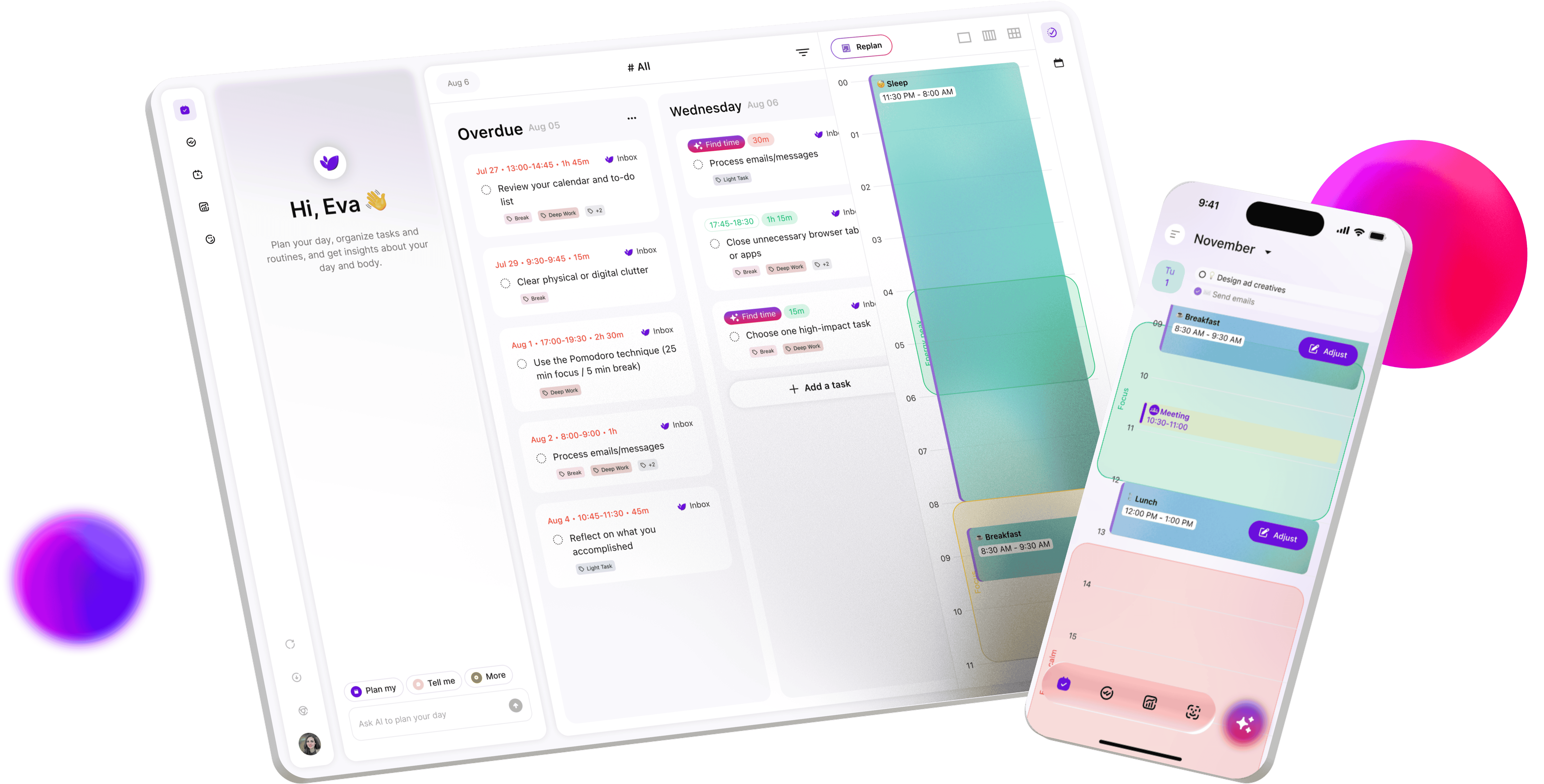 Lifestack plans your tasks, meals, sleep, and focus around your real life.