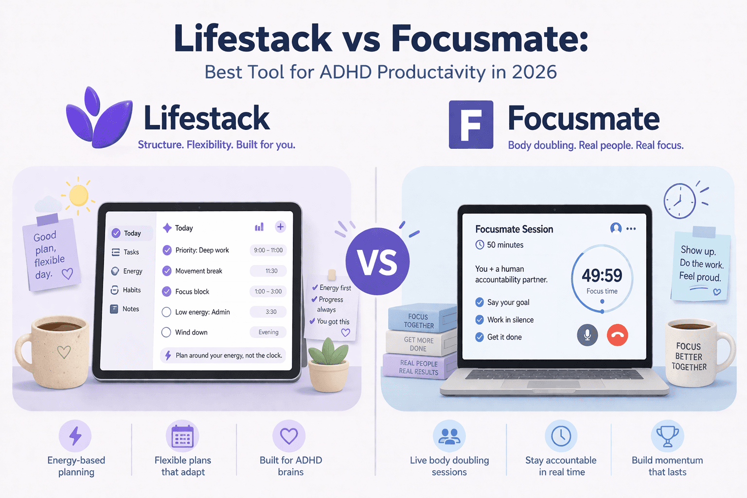 Lifestack vs Focusmate: Best Tool for ADHD Productivity in 2026